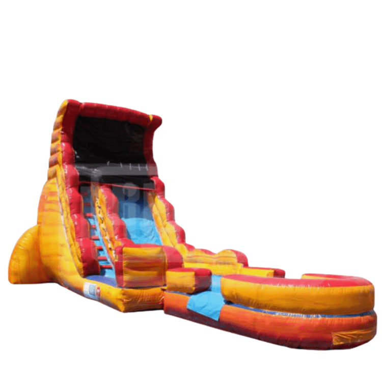 Get ready to feel the heat with our 22-foot Volcano Water Slide! Inspired by the power of nature, this towering slide features a volcanic design that lets you race down into a refreshing splash pool. The explosive theme, combined with the thrill of the slide, makes it the perfect centerpiece for any summer party or event. L: 30' x W: 18' x H: 22'